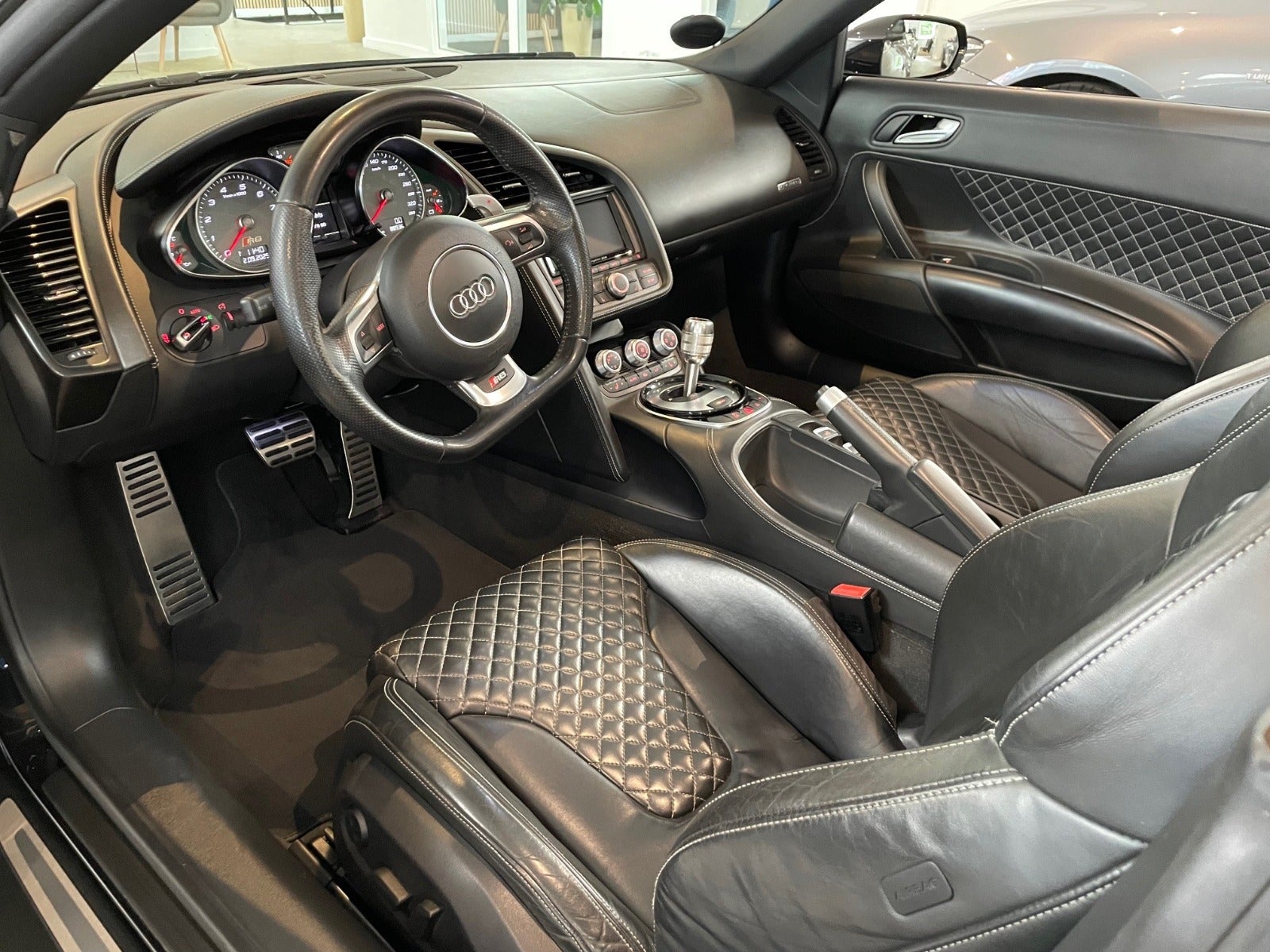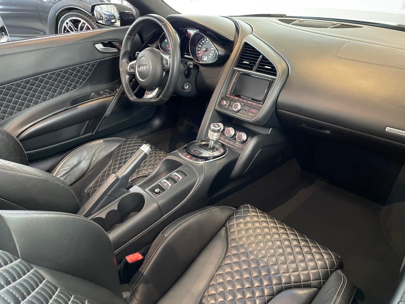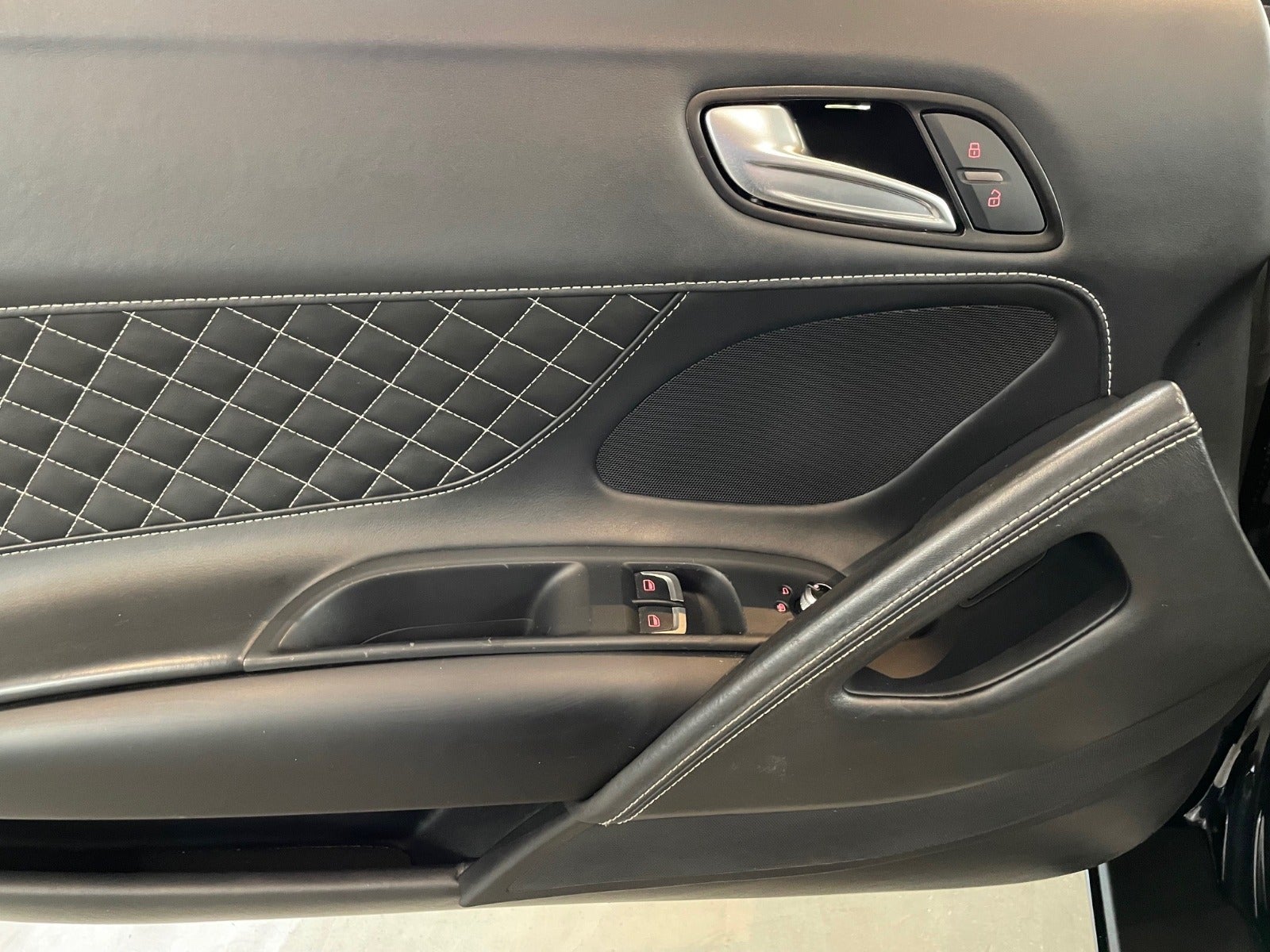 Kabine: Sort læder med hvide diamant-syninger