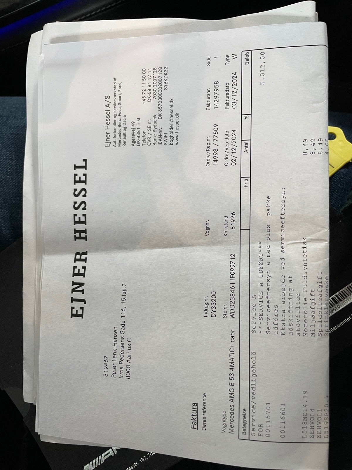 Service: Alle services udført ved Mercedes - seneste service foretaget ved km. 51.926 (02.12.2024)